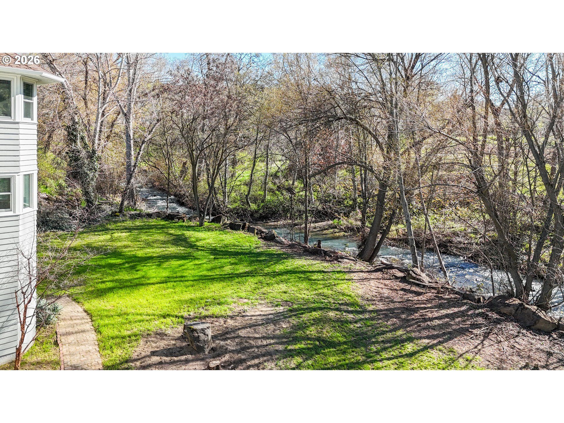 Classic 1930s home perched above Mill Creek. This home includes many custom features from the era, including hardwood floors on both the main and upper floors, laundry chutes, numerous closets, and built-in storage. The covered porch entry allows access from the garage to the front door. A nice foyer enters the formal living room and common halls, leading to the kitchen, the open stairway to the upper level, and the office at the base of the stairs.The spacious formal living area has abundant natural light and a view of Mill Creek from the piano nook. There is also a lovely fireplace flanked by two picture windows.The formal dining room is situated between the living room and the kitchen, it features corner cabinets for storing collectibles or your fine china and a sliding door that leads to the deck for outdoor entertaining.The kitchen has been updated with heated tile floors, granite countertops, cherry cabinetry and Jenn-Air built in ovens and a gas cooktop with a grill feature. Banquet seating with a wall of windows overlooks the creek at the back of the kitchen. Around the corner from the kitchen is a nice-sized bedroom with a creek view and a full bathroom featuring a tile shower.An open banister leads upstairs to four more bedrooms with views. Hardwood floors are throughout this level and there is one and a half bathrooms. The spacious primary suite includes two separate closets, one of which is a walk-in closet. This bedroom is filled with natural light, could also serve as a second family room and has balcony access overlooking the creek. The half bath is easily accessed from this primary suite.From the kitchen there is access to the stairway leading to the exterior access for the lower-level deck and a few more steps to the basement. This stairwell serves as an atrium, featuring numerous windows and lovely plants. This outside access allows entry to the basement without coming through the house. The basement features a full bathroom with a tile