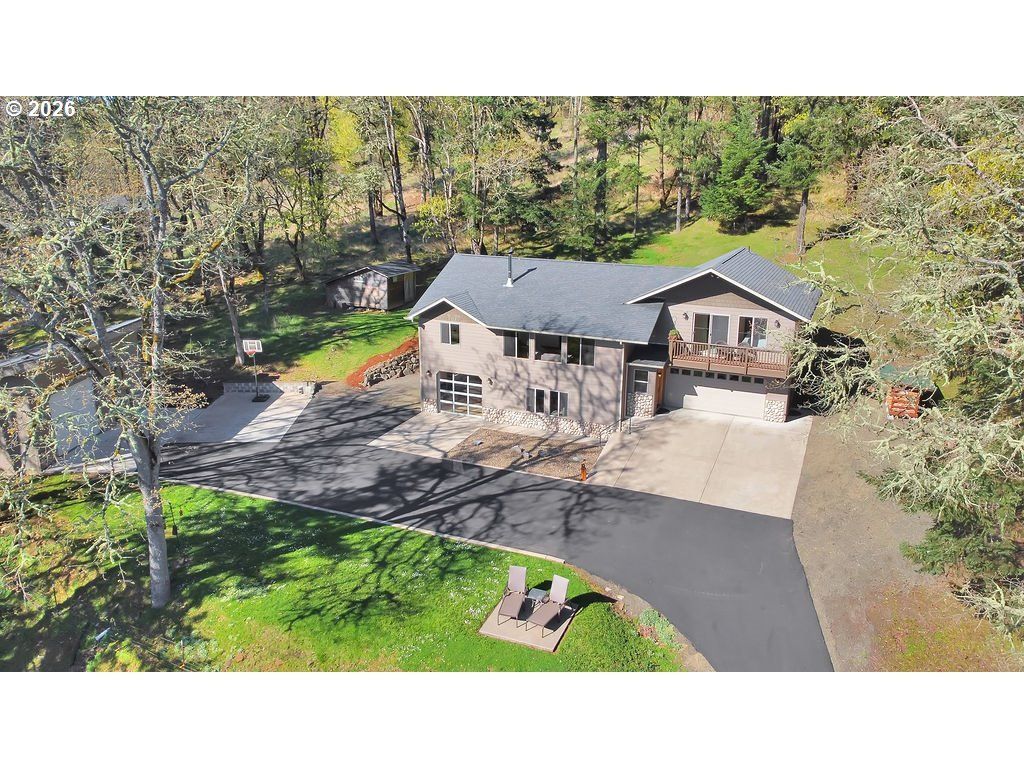 Private 4.71-acre retreat just 7 minutes to I-5, offering an easy drive to Eugene/Springfield, Albany, and Salem.Set against sweeping valley views, this custom home delivers the space and privacy buyers are looking for-without sacrificing everyday convenience. Whether commuting to RiverBend, splitting time between Eugene and Albany, or simply wanting room to breathe, this location supports real life.Built in 2011, the home offers over 2,600 square feet with a versatile split-level layout designed for flexibility. The 3-bedroom, 3-bath floor plan includes multiple living areas, making it well-suited for multi-generational living, guest suite, or separation of living and work-from-home needs. Vaulted ceilings and expansive windows bring in natural light while framing the surrounding landscape.The upper deck is positioned to capture the views and sunsets, while the private hot tub area provides a quiet, tucked-away outdoor space. A mix of open and wooded surroundings offers both usable outdoor space and natural privacy.Designed with function in mind, the property includes a 30x24 shop with 220 power, RV parking, and a paved driveway for ease of access. The 3-car garage configuration features an attached 2-car garage plus a separate single bay-currently used as a workout and flex space.The lower level adds flexibility with a separate exterior entrance and a spacious bonus room originally designed as a theater room. While not a legal bedroom, it offers valuable additional living or guest space.Additional features include a heat pump with central air, private well and septic, and forest tax deferral that helps reduce overall property taxes.A rare opportunity to find privacy, views, and acreage in a location that remains connected and practical.Seller is a licensed real estate broker in the State of Oregon.