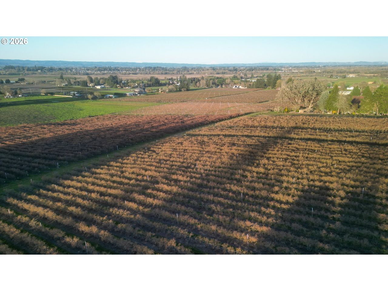 This 69 acre blueberry field is planted to 9 ac of Duke varietal, 13 acres of Aurora varietal, 6 acres of Bluecrop varietal, 15 acres of Brigitta varietal, 2 acres of Berkley varietal and the balance made up of Marion berries and open land ready for planting. Soils are highly productive and well-drained. Water rights for pressurized TVID irrigation with two distribution boxes supply both drip and overhead irrigation. 6 mainline with buried 4 and 2 laterals. 505,000 total pounds of berries in 2025. 3500 sq. ft. shop with concrete floor, power, bathroom and break-room. Separate mobile home acts as farm office. Separate storage building. Previous building site with gorgeous multi-mountain view may be suitable for new home - verify requirements with Washington County.